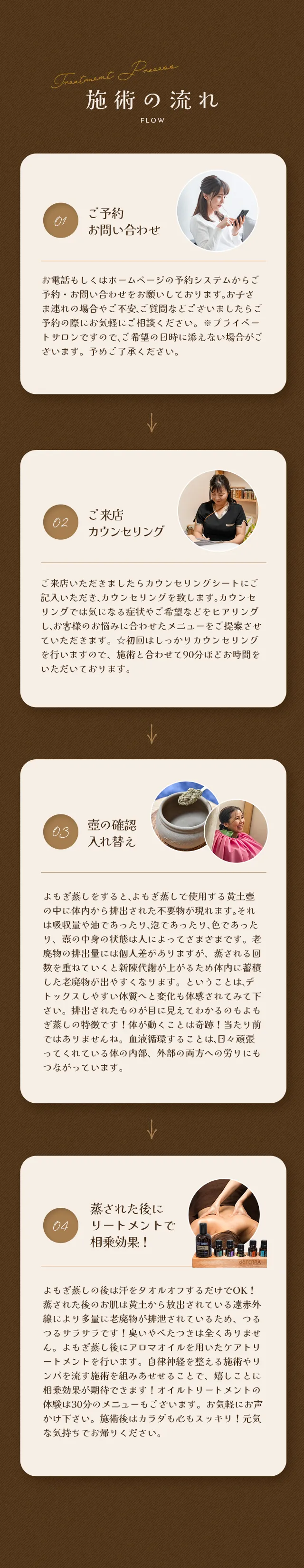 ※妊娠中や生理中は足蒸しで対応させていただいております。